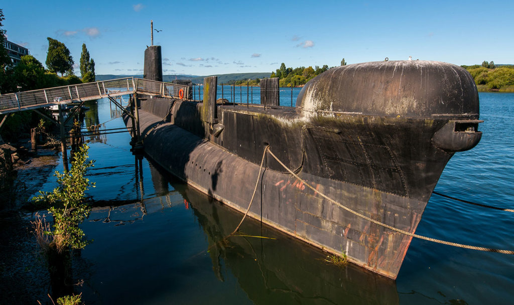 Vista del Museo Submarino desde la costanera de Valdivia.